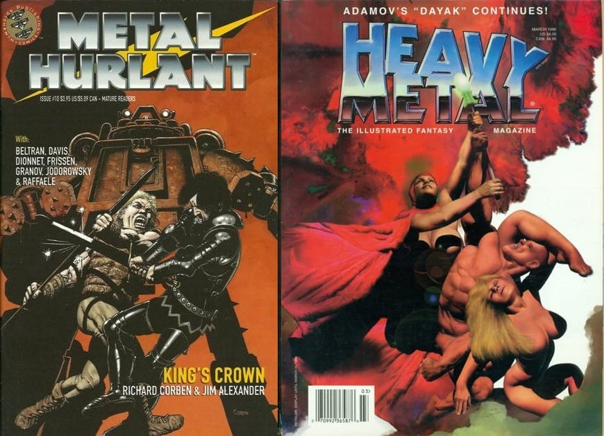 Corben siguió colaborando con la publicación francesa y su revista hermana norteamericana Heavy Metal, en esta época nace su personaje icono, Den. Den es un chico nerd que es transportado a un mundo primitivo, su cuerpo cambia al de un fisiculturista y comienza sus aventuras fantásticas alrededor de este mundo barbárico.