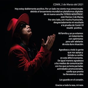 Sax dio positivo por Covid-19 a principios de marzo, así lo informo el mismo en su Facebook, bromeando un poco, al mencionar que estaba doblemente positivo, ante el nuevo sencillo que se estrenó el 5 de marzo en las plataformas digitales, como positivo en su prueba de Covid-19.