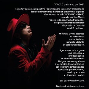 Sax dio positivo por Covid-19 a principios de marzo, así lo informo el mismo en su Facebook, bromeando un poco, al mencionar que estaba doblemente positivo, ante el nuevo sencillo que se estrenó el 5 de marzo en las plataformas digitales, como positivo en su prueba de Covid-19.