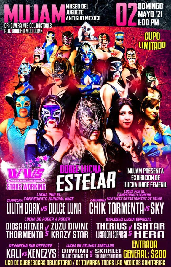 Y el Domingo 2 de Mayo no te pierdas la función de Lucha libre que se llevara a cabo en las instalaciones del MUJAM (cupo limitado)