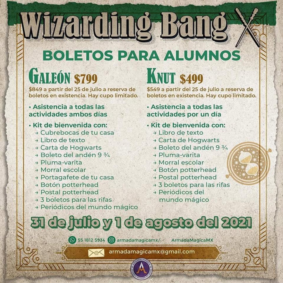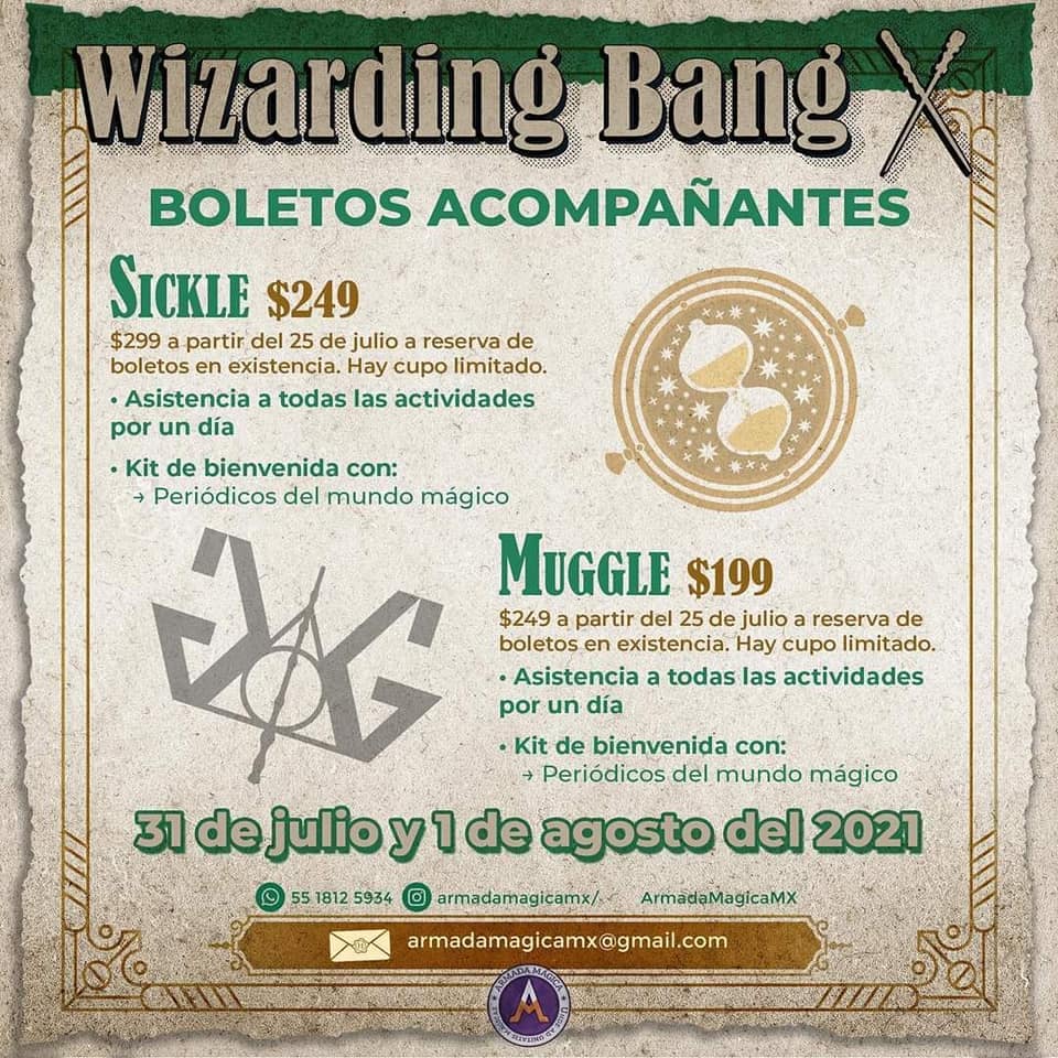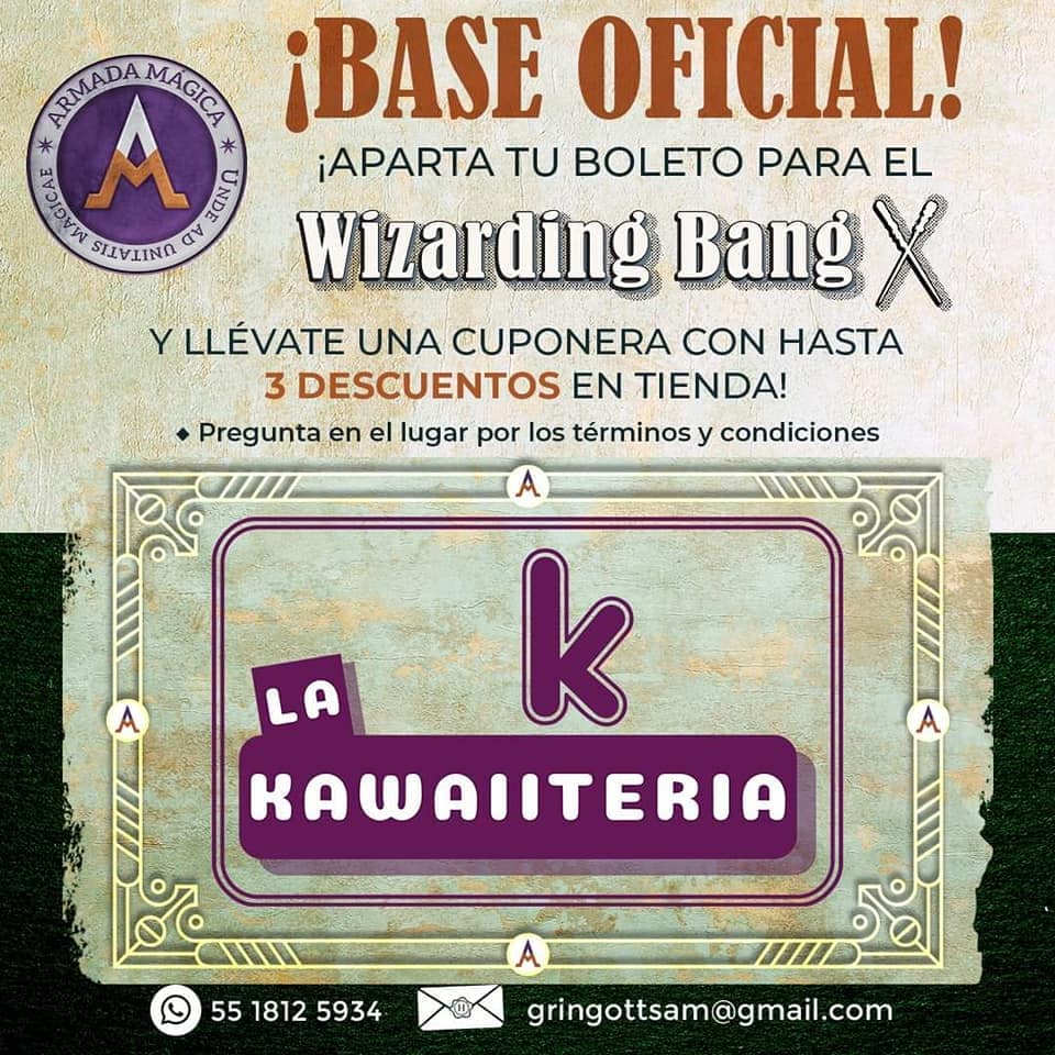 La décima edición de este evento temático Wizarding Bang, se realizará en Plaza de las Estrellas, Anzures, CDMX. Los días 31 de julio y 1 de agosto del 2021.