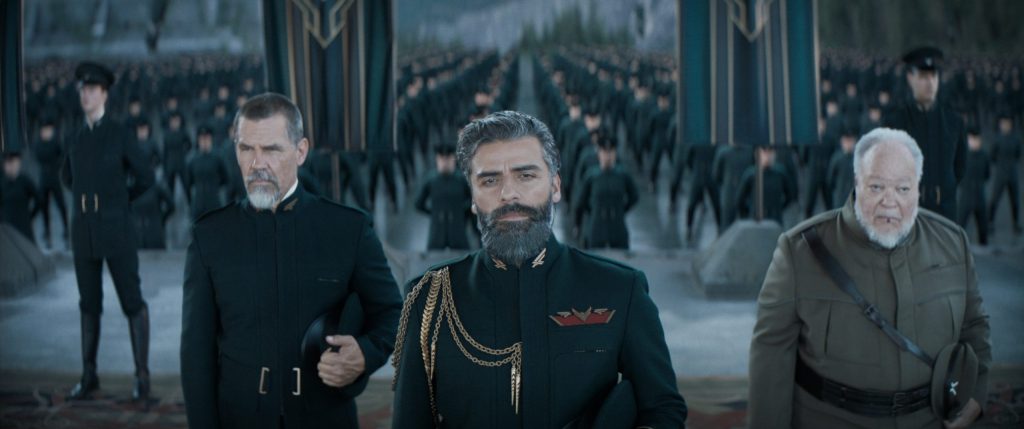 En general, Villeneuve no quiere fascinarnos, sino impactarnos, y, en último extremo, apabullarnos. Un empeño que no llevaría a nada de no ser porque el director conoce bien su materia prima y aplica unas cuantas normas elementales al presentarla. A saber: que sumergirnos en el mundo de la historia, mostrando las dinámicas sociales que moldean este futuro feudal y atan entre sí a los personajes, vale más que un millón de diálogos explicativos. Cuesta recordar, la verdad, un blockbuster que haya mostrado tanto respeto por su público en los últimos años, aunque ese respeto implique dejar a dicho público en medio de un entorno hostil con unas pocas indicaciones sobre cómo orientarse en él. Gracias a esta decisión, la cinta se las apaña para resultar tan reseca y polvorienta como los paisajes que nos muestra. Y no hablamos solo de los desiertos del planeta Arrakis, convertidos por la cámara en una trama casi abstracta donde las dunas ondulan y se entrelazan entre sí como en una filigrana de sed. Nos referimos también a esa sociedad aristocrática de conspiradores donde la paranoia equivale a la cordura, y donde el contacto humano parece haberse extinguido. De hecho, Villeneuve está tan empeñado en viviseccionar este mundo imaginario y sus relaciones de poder que, a golpes de escalpelo, reduce los vínculos entre sus habitantes a la mínima expresión, fiándolos a su reparto de estrellas para que estas se apañen con lo que el guion les deja.
