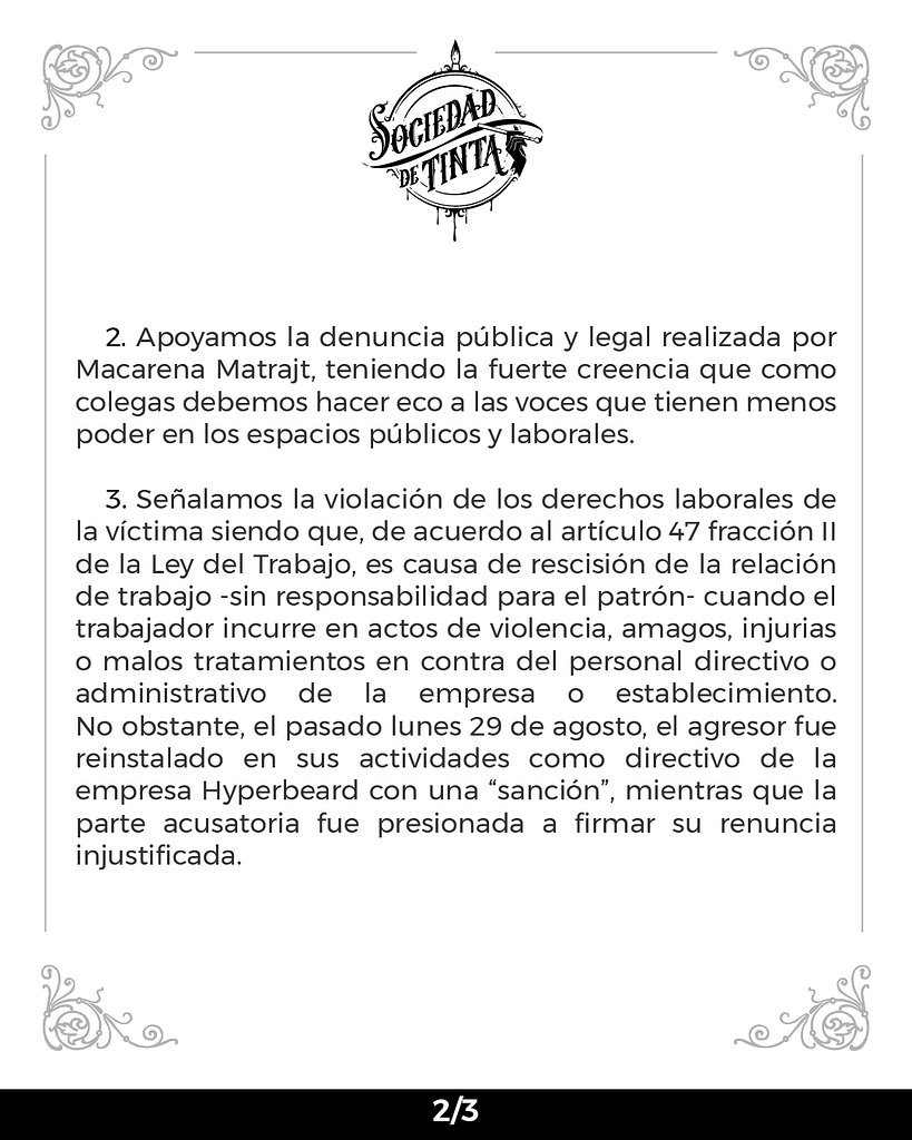 Es lamentable vivir en un país que defiende abusadores como @aldo_turati de la empresa @HyperBeard y en lugar de reaccionar y ponerle un alto ya que no es la primera vez que comete un acto similar, optan por despedir a las victimas. ¡Cuidado a las mujeres no quieren trabajar ahí! pic.twitter.com/RyFn6rkERT