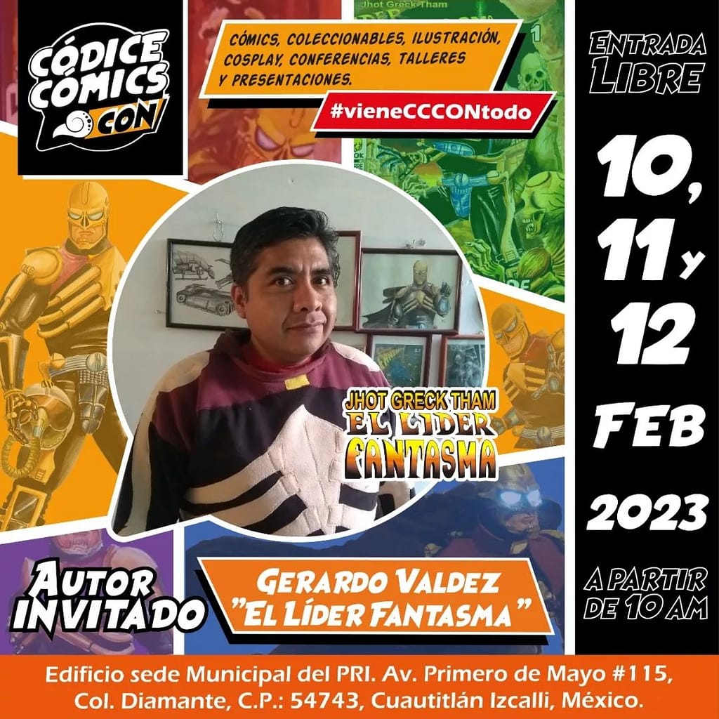 El viernes 10 de Febrero, destaca la conferencia con los integrantes de la Comiteca del MUNAL a las 12:00 pm, nuestro querido amigo Gerardo Valdez hablará de los ya casi 22 años de su proyecto de cómic «El Líder Fantasma» a las 2:00 pm.