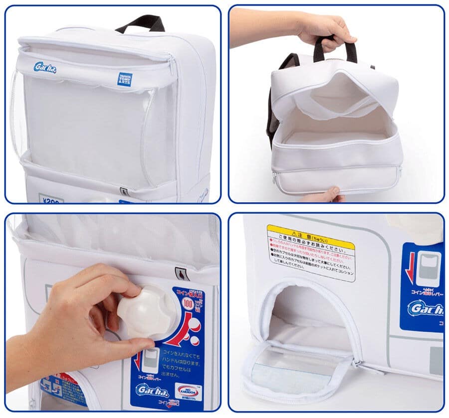 El diseño de la mochila está inspirado en la popular máquina «Gacha 2EZ» producida por Takara Tomy Arts, con la que la mayoría de los cazadores de gachas seguramente estarán familiarizados. Incluso hay juguetes cápsula de estas máquinas gacha (sí, tenemos bastantes).