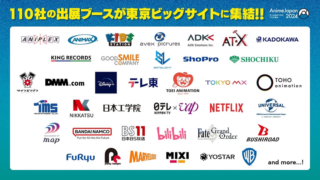 El evento de anime más grande del mundo, «AnimeJapan 2024», se llevará a cabo en Tokyo Big Sight el sábado 23 y domingo 24 de marzo de 2024. Se ha decidido que expondrán 110 empresas, incluidas las principales empresas relacionadas con el anime como Aniplex Co., Ltd., KADOKAWA Co., Ltd. y TOHO Animation (Toho Co., Ltd.), lo que la convierte en la undécima y más grande. evento alguna vez. En el momento del evento, también se lanzó una imagen con 22 personajes de anime.