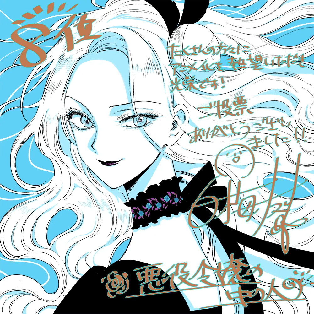 ¡Estoy muy feliz de que la versión en cómic de «The Villainess Inside» haya sido elegida en el octavo puesto del «Ranking de Mangas para Adaptar al Anime»! Quiero expresar mi sincero agradecimiento a todos los que votaron y a todos los lectores que nos apoyan a diario. Como autor original, me alegra mucho que la historia haya recibido tanta atención gracias a quienes la aman y apoyan a los personajes. (Makiburo sensei)