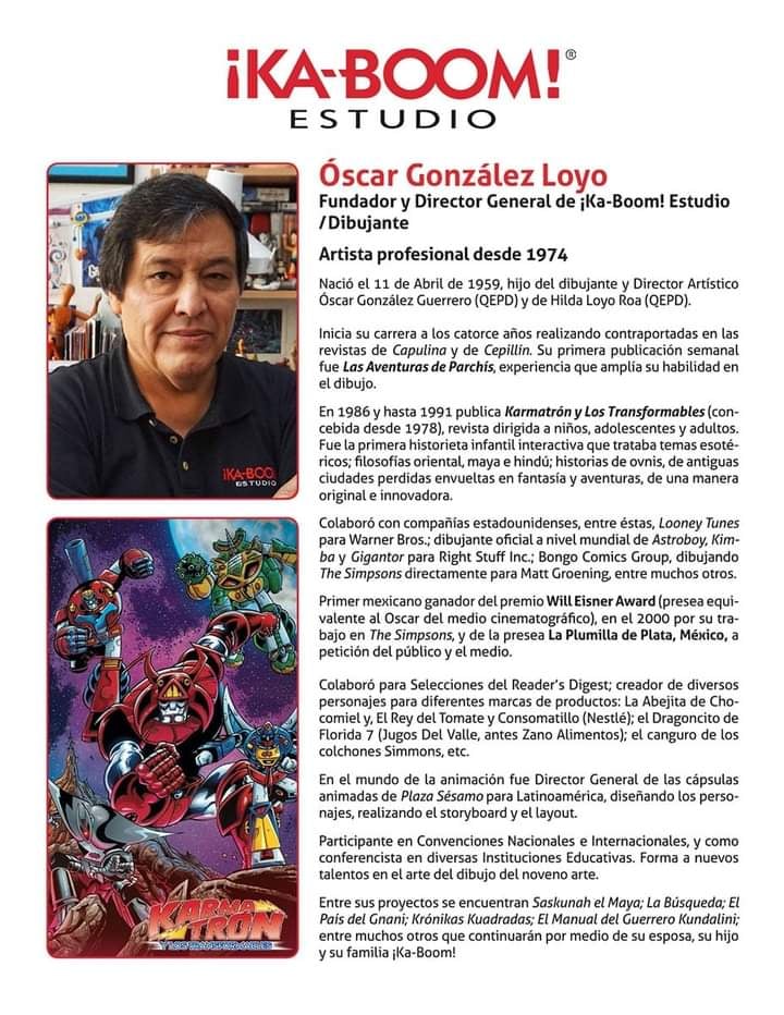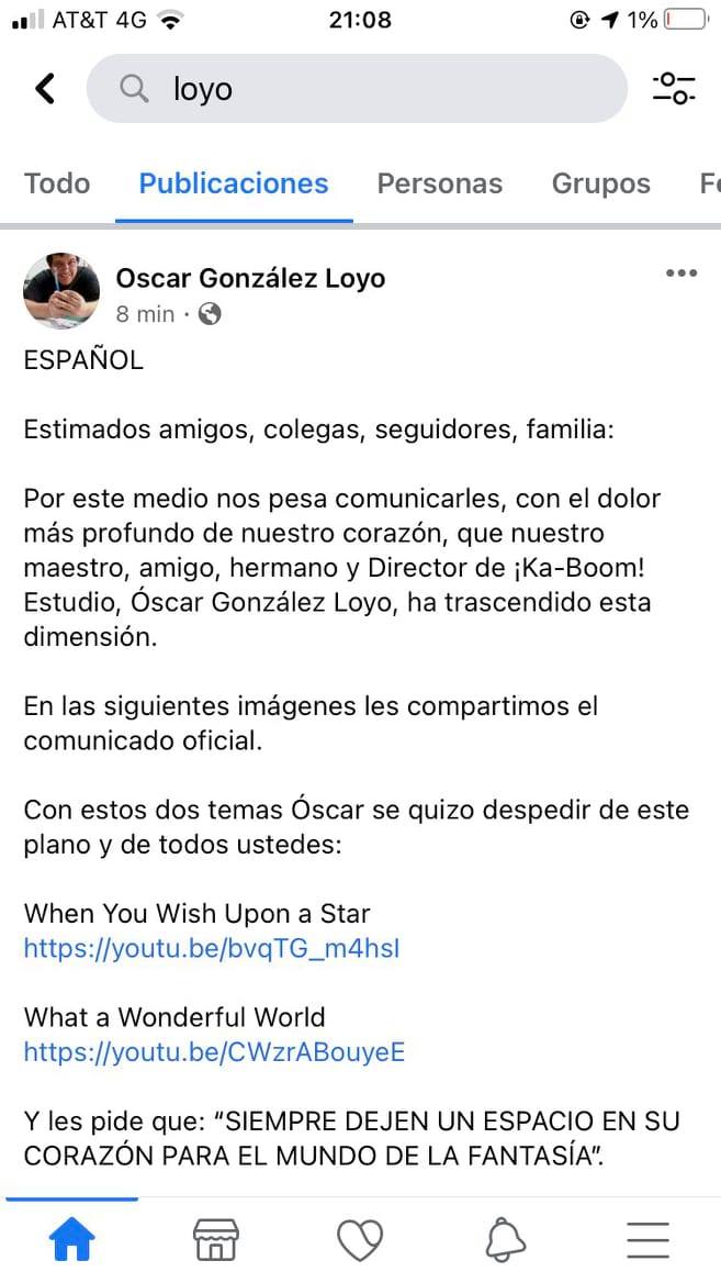 «Por este medio nos pesa comunicarles, con el dolor más profundo de nuestro corazón, que nuestro maestro, amigo, hermano y director de ¡Ka-Boom! Estudio, Oscar González Loyo ha trascendido esta dimensión.